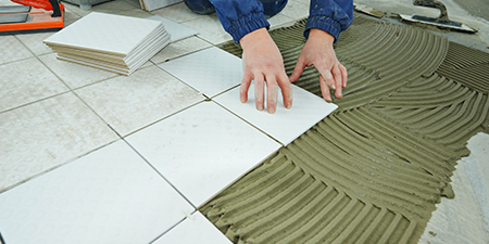 設計図に従って床や壁に指定のタイルを張りつける工事です。タイル工事では浴室やキッチンなどの部分的なタイル工事から、外装全面にまで及ぶ大規模なタイル工事まで幅広く活躍します。