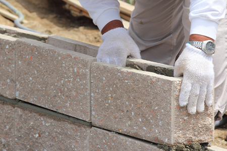 必要な箇所へブロックをモルタルで接着させて積み上げる施工のことです。