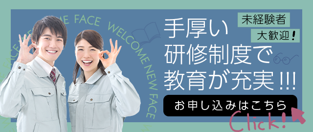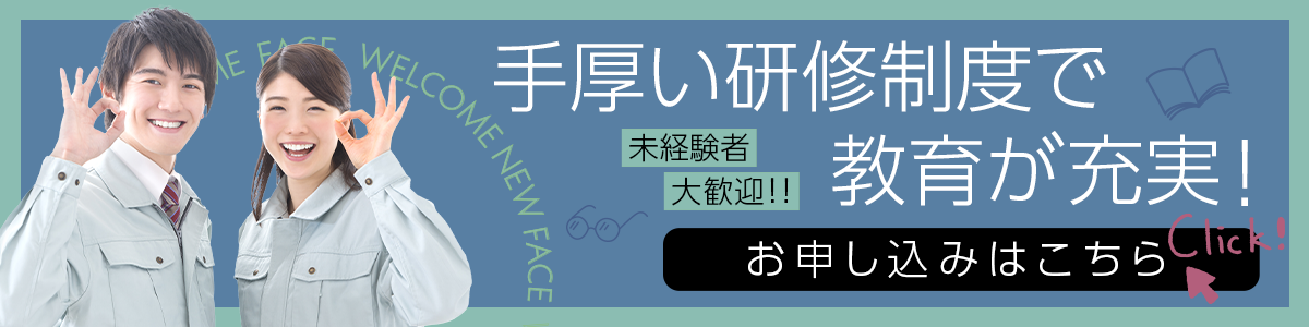 弊社では未経験の方でも安心して業務に励めるように、研修制度を取り入れております。